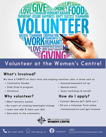 Victoria Faulkner Women’s Centre offers women opportunities to both receive and provide support, to connect with others and build community. We are always looking for volunteers to help support our programs!